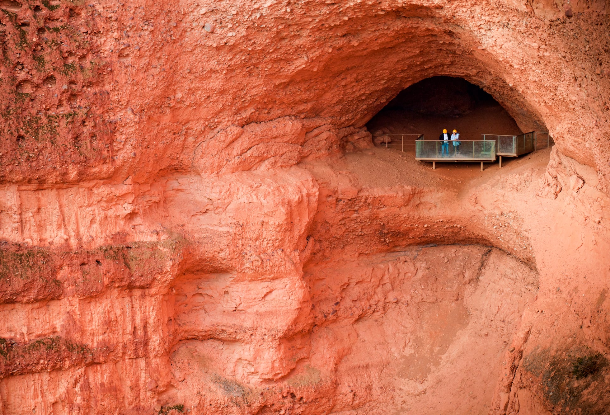 Pero hay un lugar en este entorno minero que supera todas las expectativas: el mirador de Orellán, desde el que se pueden ver los espectaculares vaciados de la montaña. Al atardecer, tierra y cielo se funden y el lugar arde en colores rojizos, con el Bierzo al norte, los montes Aquilanos a la espalda y, al frente, el sol despidiéndose en silencio.